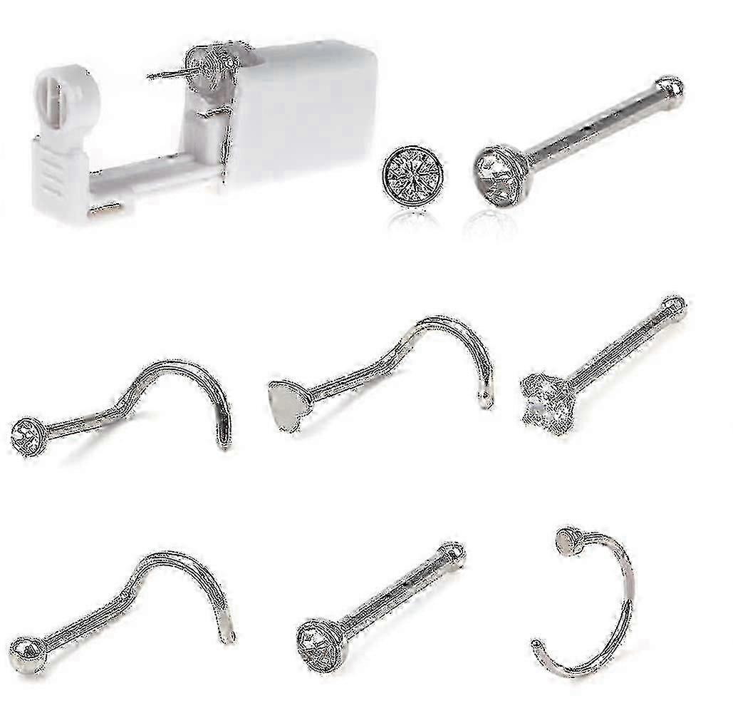Nose Piercing Kit Disposable Sterile Safety Nose Piercing Gun Tools With 6 Pcs Nose Studs For Women Man Girls Boys Unisex