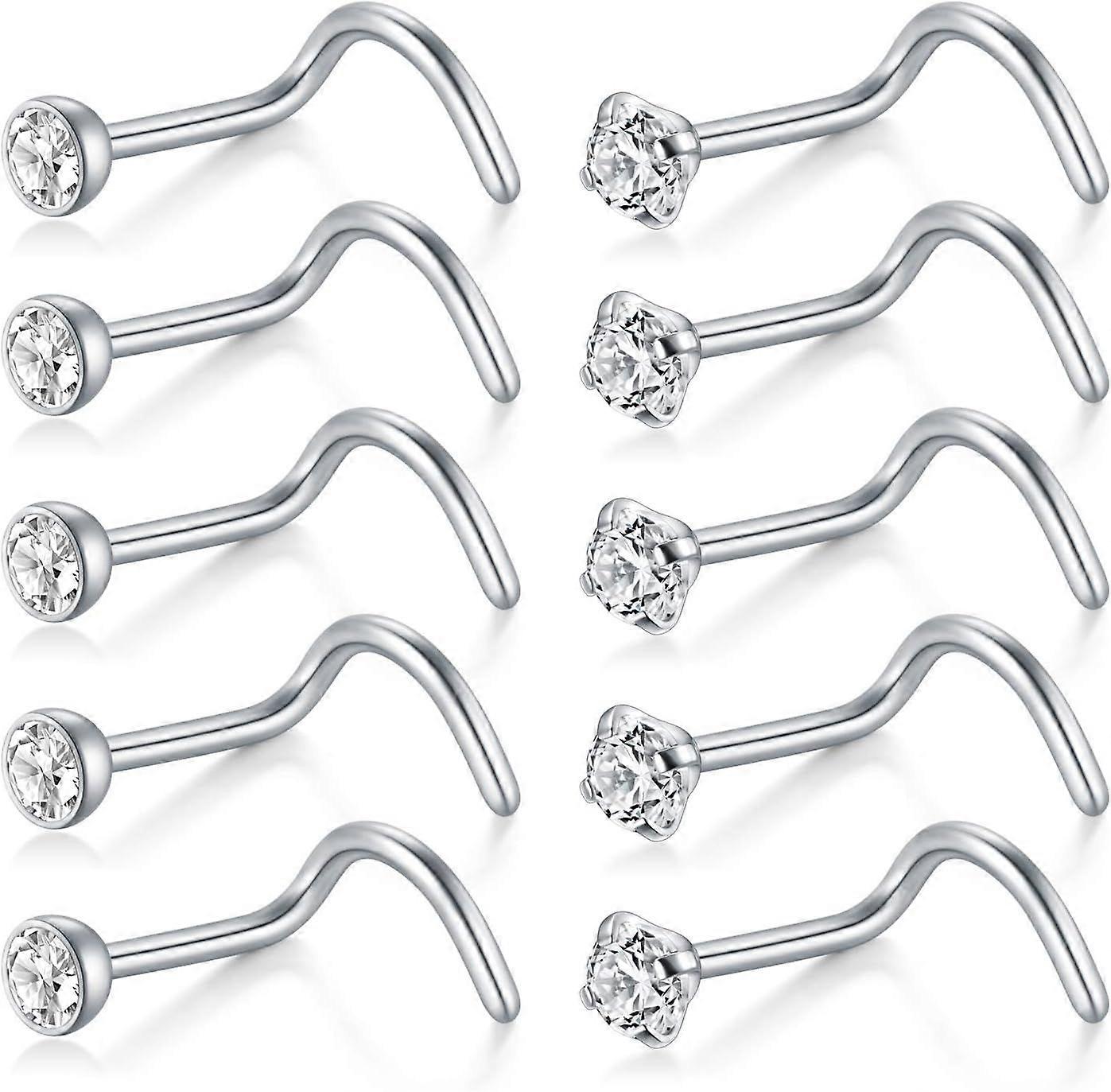 Nose Rings 10Pcs 18G Nose Screw Rings Studs Surgical Steel Piercing Jewelry 2mm