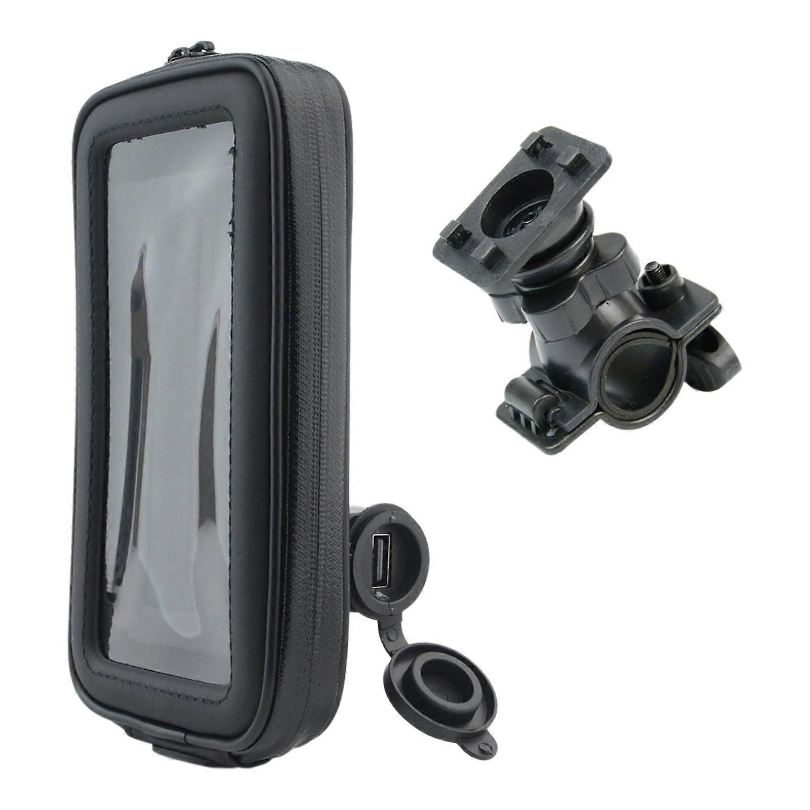 Motorbike Phone Bag 360 Degree Rotating Stand Motorcycle Handlebar Mount Phone Holder Waterproof Bag with USB Port M within 4.7 inches