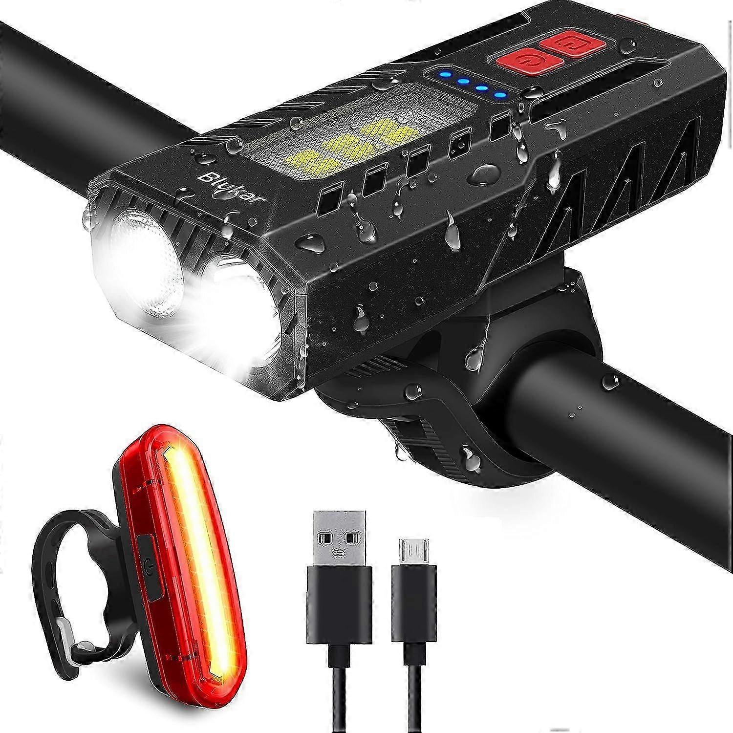 Bike Lights Set, Runtime 8+ Hours, 5 Lighting Modes, Waterproof Bike Front Head light and Back Tail Rear light Reflectors for All Bike,Mountain