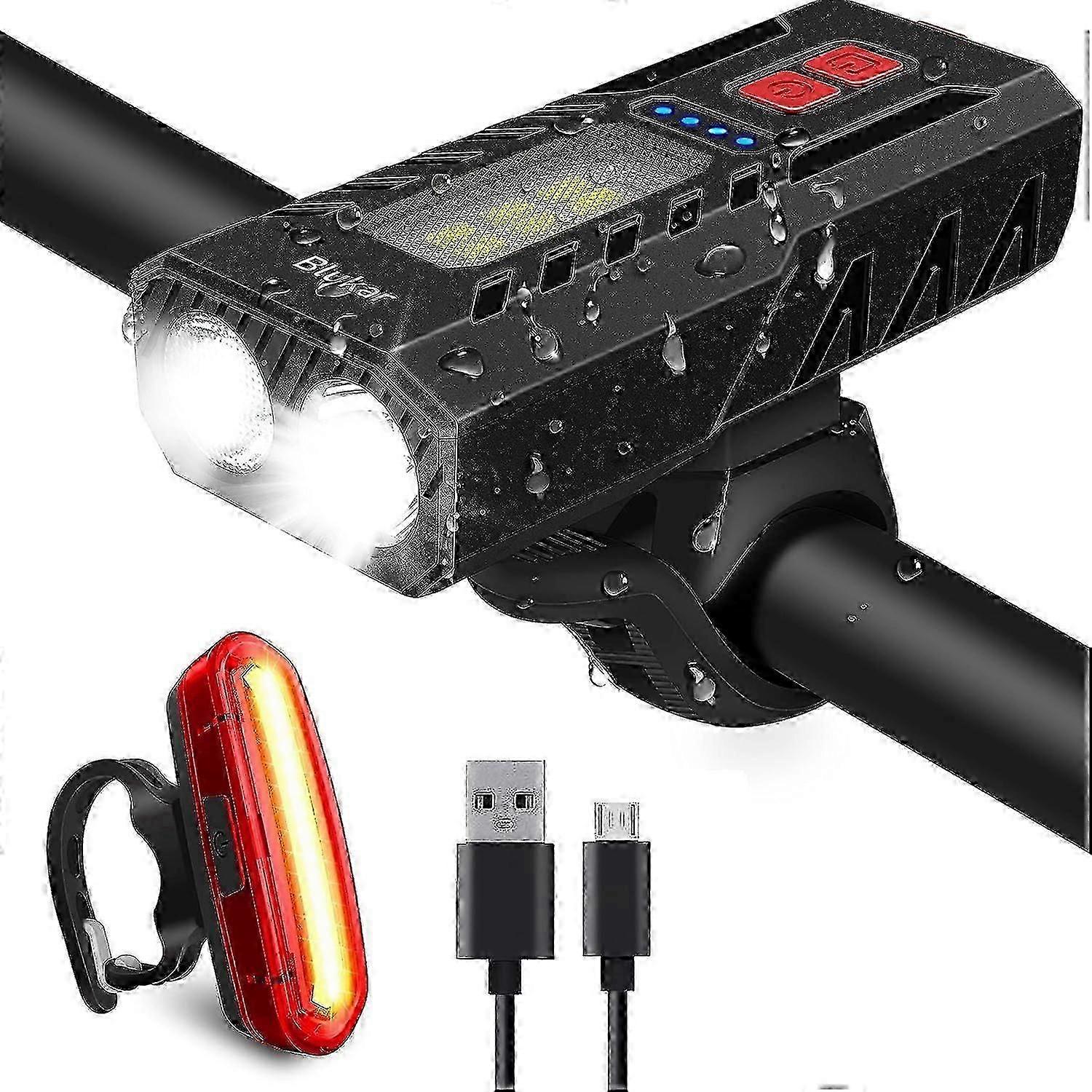 Bike Lights Set, Runtime 8+ Hours, 5 Lighting Modes, Waterproof Bike Front Head light and Back Tail Rear light Reflectors for All Bike,Mountain