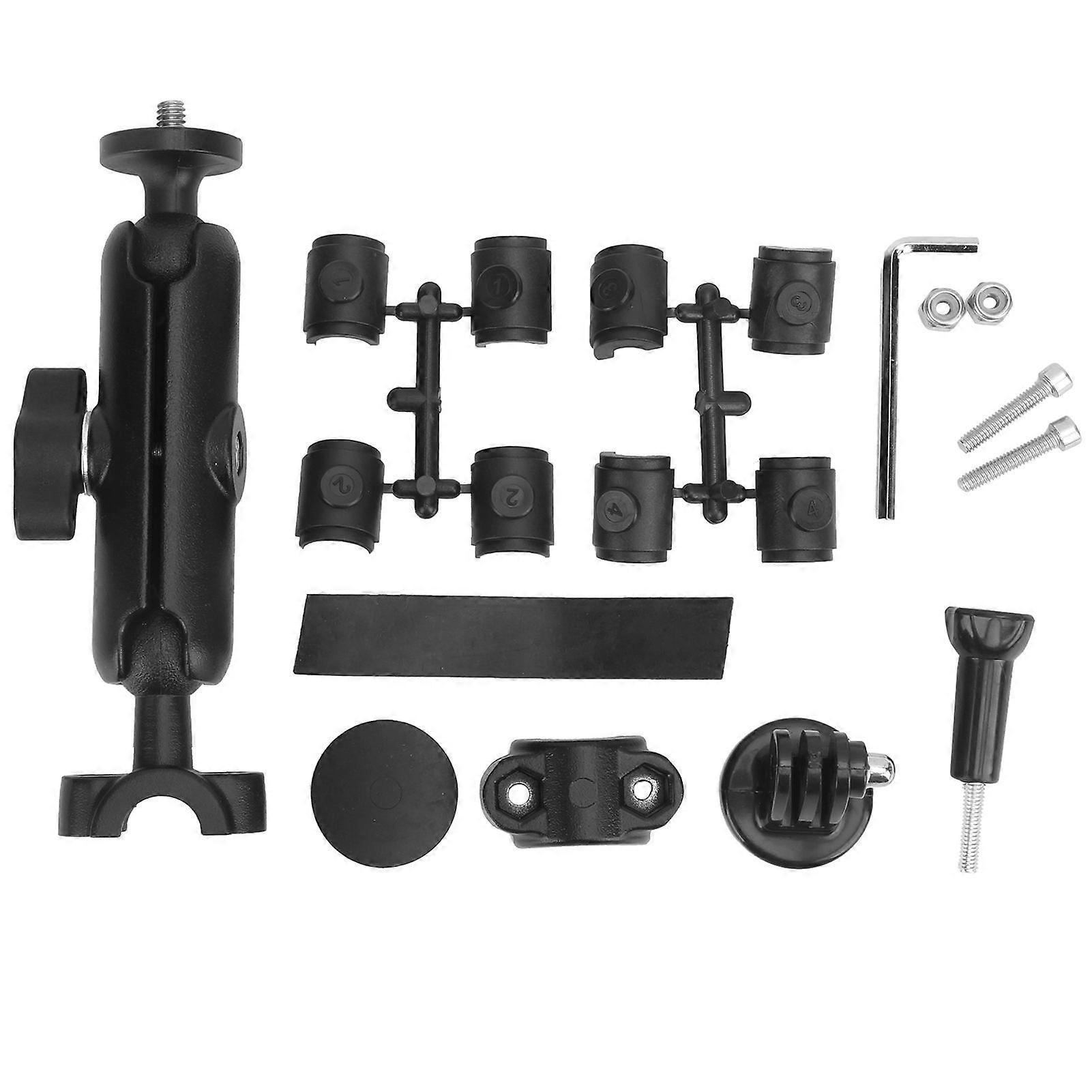 Feature:1. Made of high quality metal material with strong toughness and good wear resistance, it is sturdy, durable and long service life.2. Double round head design, flexible rotation of the knob to control the tightness, and can be adjusted at will in 360.3. Ride shooting tool, equipped with standard 1/4 inch screws, the screw lock is stable and does not shake.4. Adapt to a variety of devices, various brands of sports cameras and mobile phones can be matched with them.5. Handlebars of motorcycles and electric vehicles with a diameter of 916mm/0.350.63in can be installed and used.Specification:Item Type: Handlebar Mirror BracketMaterial: MetalColor: BlackWeight: Approx.212g/7.5ozInterface: 1/4in ScrewApplicable Models: Sports Cameras, Mobile Phones(Mobile Phone Holder Needs to Be Purchased Separately).Package List:1 x Bracket1 x Rubber Pad1 x Adhesive Stickers1 x Adapter1 x Screw1 x Wrench1 x Handlebar Holder2 x Nut2 x Screw8 x Handlebar Holder Inner Bushing