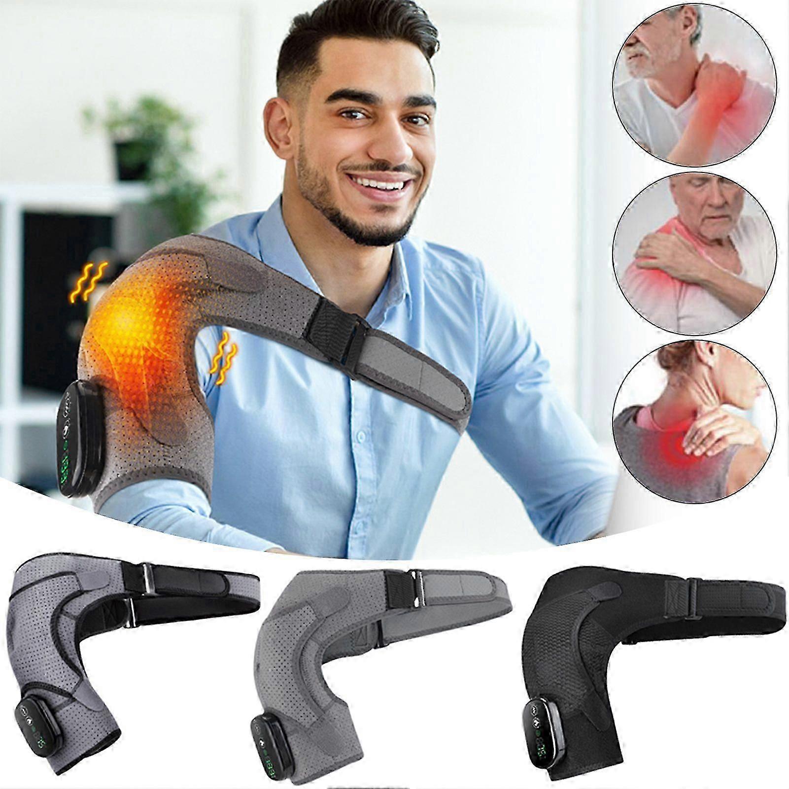Electric Heated Shoulder Wrap with Vibration Massage - Cordless Shoulder Wrap Massager, Pain Relief Heating Brace for Men & Women