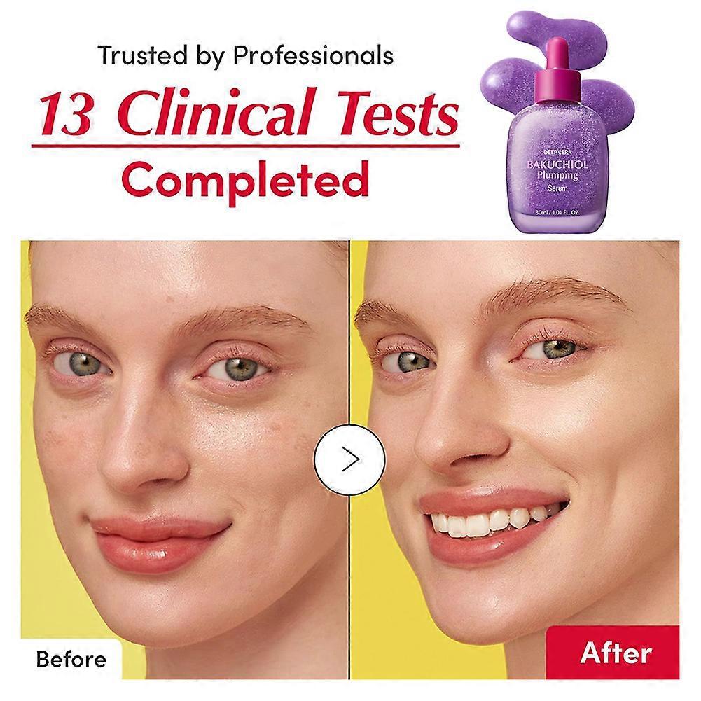 Features: Potent Bakuchiol Formula: Harnesses the power of Bakuchiol, a cutting-edge plant-based alternative to retinol, offering superior anti-aging benefits without common irritation or photosensitivity. Reduces Fine Lines Wrinkles: Visibly diminishes the appearance of fine lines and deep wrinkles, promoting a smoother, more youthful complexion over time. Boosts Collagen Production: Actively stimulates the skin's natural collagen synthesis, leading to enhanced firmness and improved skin architecture. Enhances Skin Elasticity: Significantly improves skin's bounce and resilience, contributing to a more lifted and defined facial contour. Minimizes Enlarged Pores: Effectively tightens and refines the appearance of enlarged pores, creating a polished and visibly smoother skin texture. Intense Plumping Effect: Delivers deep hydration and a powerful plumping action, restoring lost volume and youthful fullness to the skin for a supple feel. Gentle Non-Irritating: Formulated to be gentle on all skin types, including sensitive skin, making it a safe and effective choice for daily use, day or night. Notice: 1.Actual color may be slightly different from the image due to different light effect 2.Please allow 1-3cm deviation due to manual measurement Description Capacity: 30ml Package List: 1/2/3pcs Deep Care Bakuchiol Plumping Serum