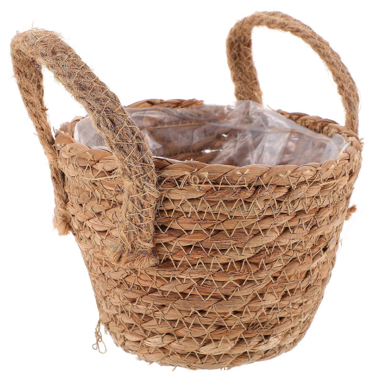 Basket Weave Planter Basket Indoor Planter Basket Corridor Use Light Brown Color 5.9X5.9X4.7in Storage Holder 1Set