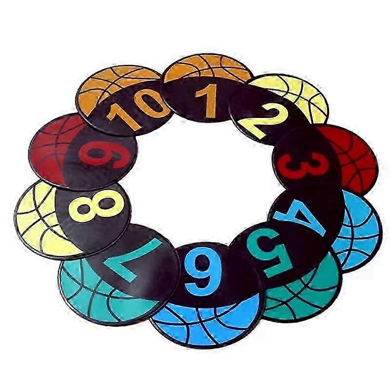 [Great Design]Round flat design; Numbers 1-10 with different colors coding to help during drills with call-outs;All markers are brightly colored for high visibility;