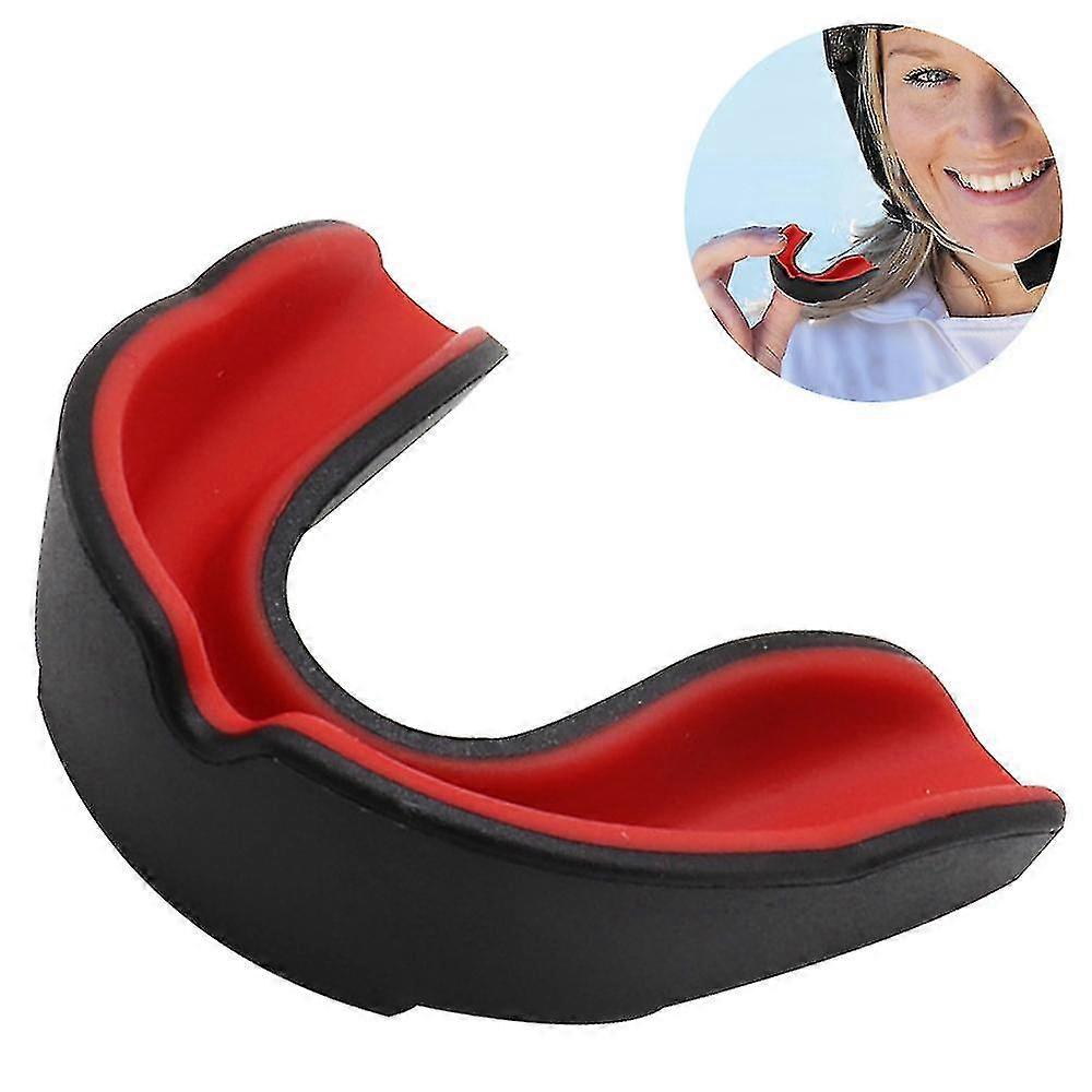 Sport Mouth Guard Eva Teeth Protector Kids Youth Mouthguard Tooth Brace Protection For Basketball Rugby Boxing Karate 1. SECURE HOLD GOOD WEARING: Our sports mouthguard can be ideally adapted to your teeth thanks to the gel inner layer. Due to the slim design and the very good fit, the mouthguard fits snugly and comfortably. In addition, it is tasteless and odorless and does not trigger gagging.2. PERFECT PROTECTION FOR YOUR TEETH: The outer rubber shock frame offers the best protection for teeth, gums, jaw and brain. So you can feel totally protected and fully concentrate on your training or fight.3. IDEAL BREATHING HYGIENE BOX: The improved air ducts ensure greater air permeability, so that your lungs can absorb more oxygen, which ultimately leads to more stamina and better focus.4. SUITABLE FOR EVERYONE UNBEATABLE QUALITY: We use high-quality EVA, so the mouthguard is BPA-free and does not attack the mucous membranes. The mouthguard has been independently tested and is certifiedIt is suitable for combat sports such as MMA, boxing, kickboxing, karate, BJJ, Muay Thai, Taekwondo, but also other sports such as ice hockey, rugby, basketball, handball, American football and soccerAlso suitable for men and women. 1. Due to different monitors and lighting effects, the actual color may be slightly different from the image 2. Due to manual measurement, please allow 1-3cm deviation Size: as shown Shipping color: black red Quantity shipped: 1