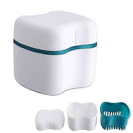 Denture Bath Case with Basket Denture Bath Cleaning Box Container Soaking Cup Cleaner Retainer Case Holder for Dentures for False Teeth