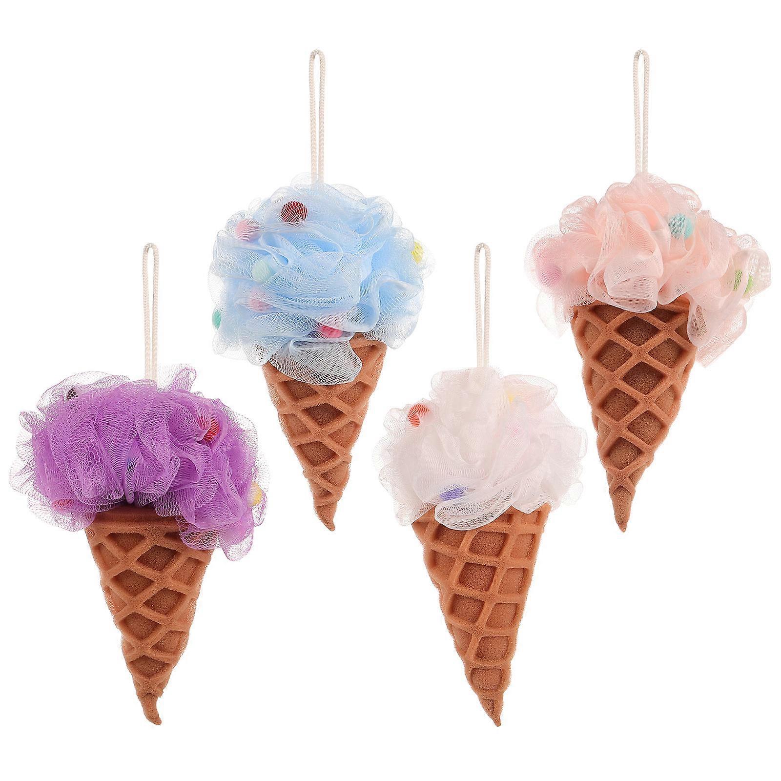 Bath Shower Loofah Sponge Ice Cream Shape Loofah Sponges Adorable Design Purple 4Pcs