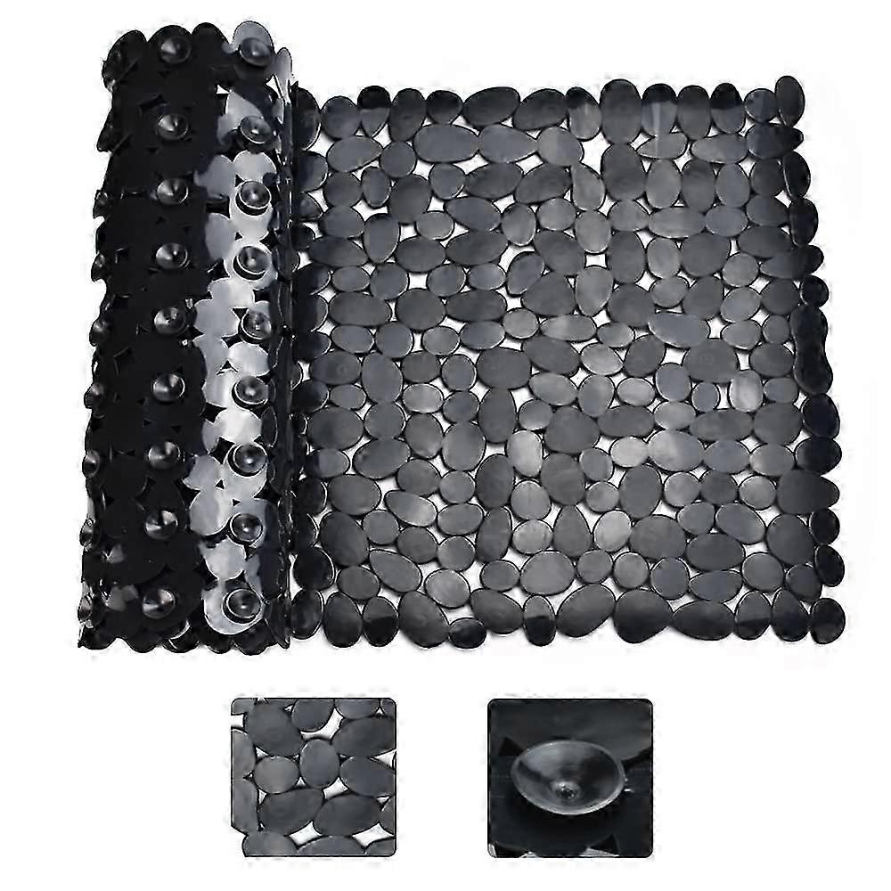 Anti-Slip Shower Mat for Bathtub, Black Rectangle Bath Mat with Suction Cups, 88x40cm