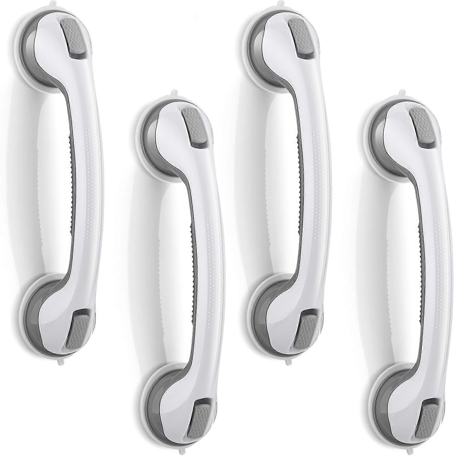 - Sturdy and Reliable: Receive 4 pieces of 16-inch gray shower grab bars, crafted from high-quality plastic. Each grab bar features two powerful suction cups, providing a secure hold on the wall. Feel confident and safe getting in and out of the bathtub or shower, even in wet conditions. - Easy Installation: No tools or drilling needed for installation. Simply press a button, position the grab bar, and attach the suction cups against a clean wall surface for a secure fit. Installation is quick, damage-free, and leaves no marks when done correctly. - Important Usage Tips: Ensure the installation surface is clean and dry for optimal suction. These grab bars are compatible with various wall surfaces like glass, tile, and fiberglass. Regularly check the stability of the suction cups for enhanced safety. Remember, the grab bars are for assistance only and should not bear full body weight. Avoid placement over grout lines. - Portability: The compact design makes these suction cup grab bars easy to carry while traveling. Quickly install them in hotel bathrooms or guest rooms, ensuring safety and comfort wherever you go. Ideal for: - Seniors seeking additional support during bathing - Caregivers assisting individuals with mobility challenges - Travelers wanting a secure grip in unfamiliar bathroom settings