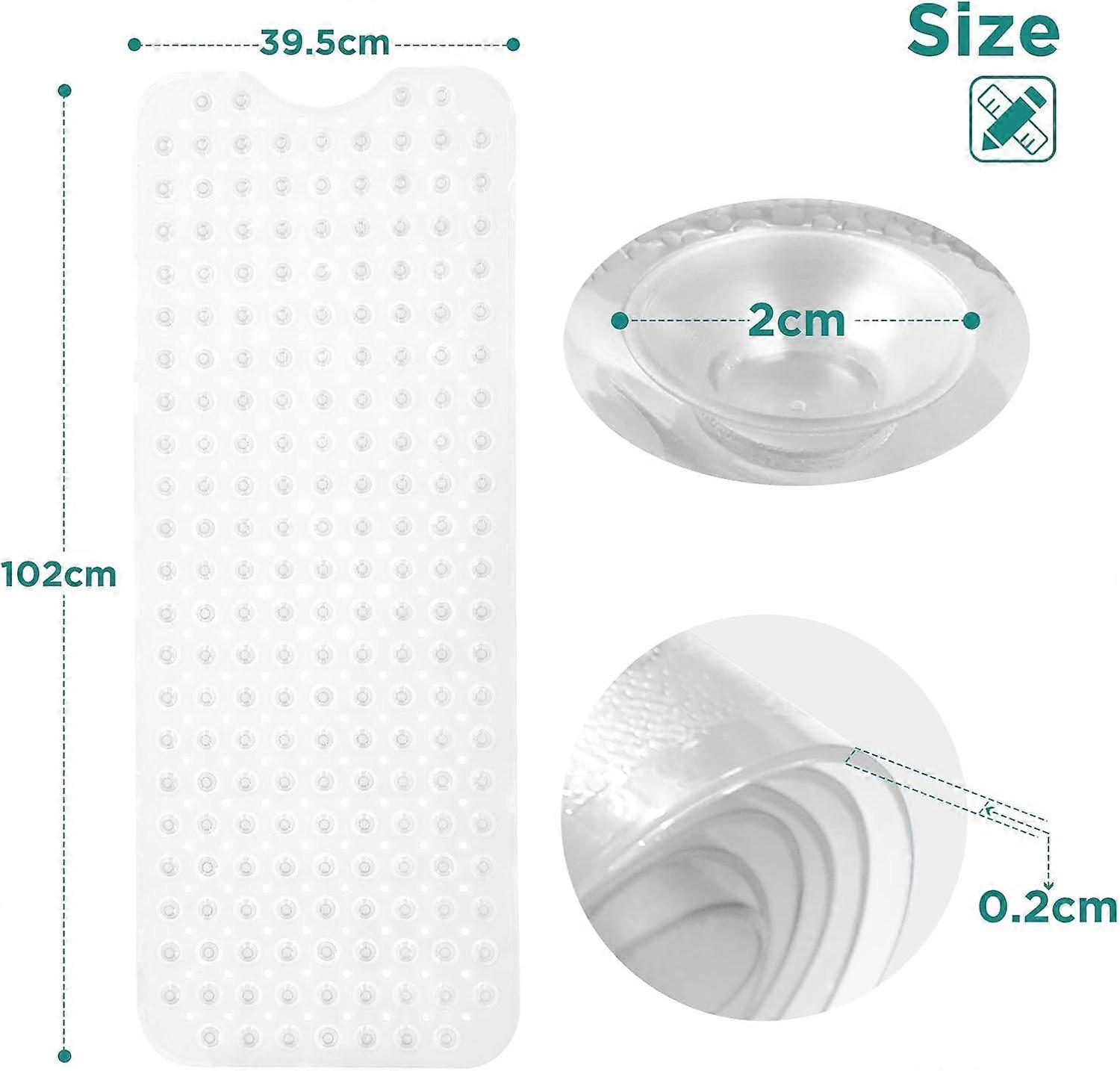 Bath Mats, Extra Long Non-Slip Bath Mats Suction Cups Bathroom Shower Mats Mildew Resistant 100 * 40 cm Teal Transparent