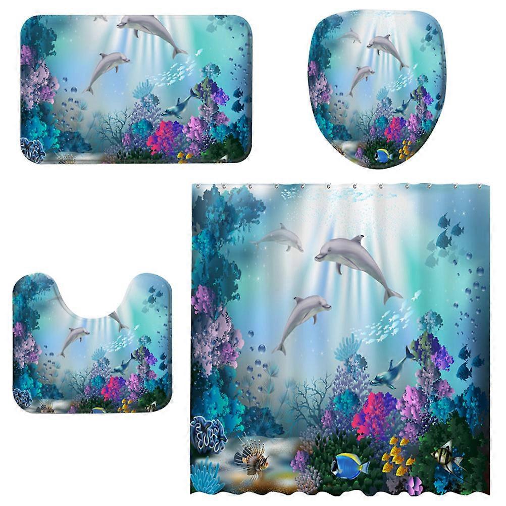 Bath Mat Ocean Theme Decorative Toilet Cover Bathroom Accessory Assorted Color Polyester 1Set