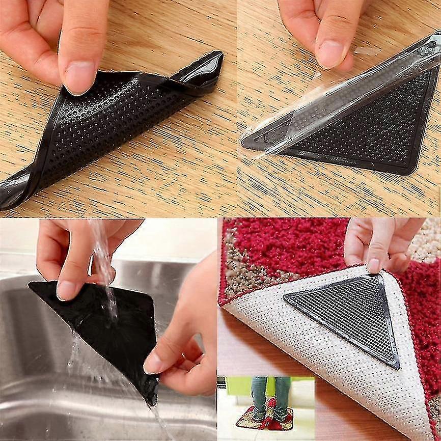 Features: very simple to use, just take off the plastic and stick it to the edges of your rug uses grip polymer technology, grips the rug while hundreds of suction pockets grip the floor prevents curled corners, bunches, slips and trips; Will not leave a sticky residue or damage your floor. Can be used on many different surfaces, wood, tilesFeatures: material: silicone measurements: about 15x11cm color: black function: prevent carpet curls, prevent slippery package include: 1 x anti slip sticker .
