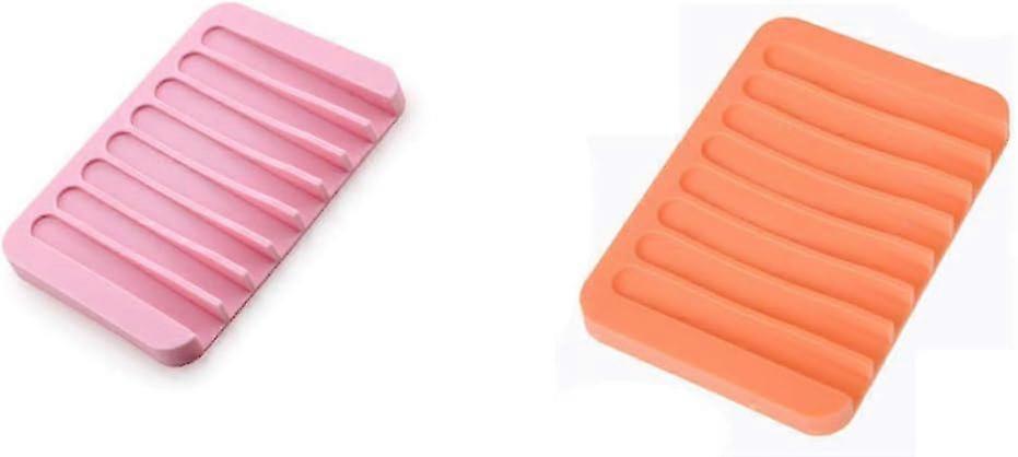 Set of 2 Flexible Silicone Soap Dishes for Bathroom, Kitchen - Pink and Orange