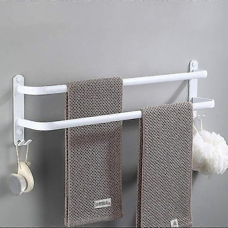 White Wall-Mounted Towel Rack with Hooks and Multi-Layer Bars for Bathroom, Hotel, or Kitchen Use, Contemporary Aluminum Design, 2 Layers