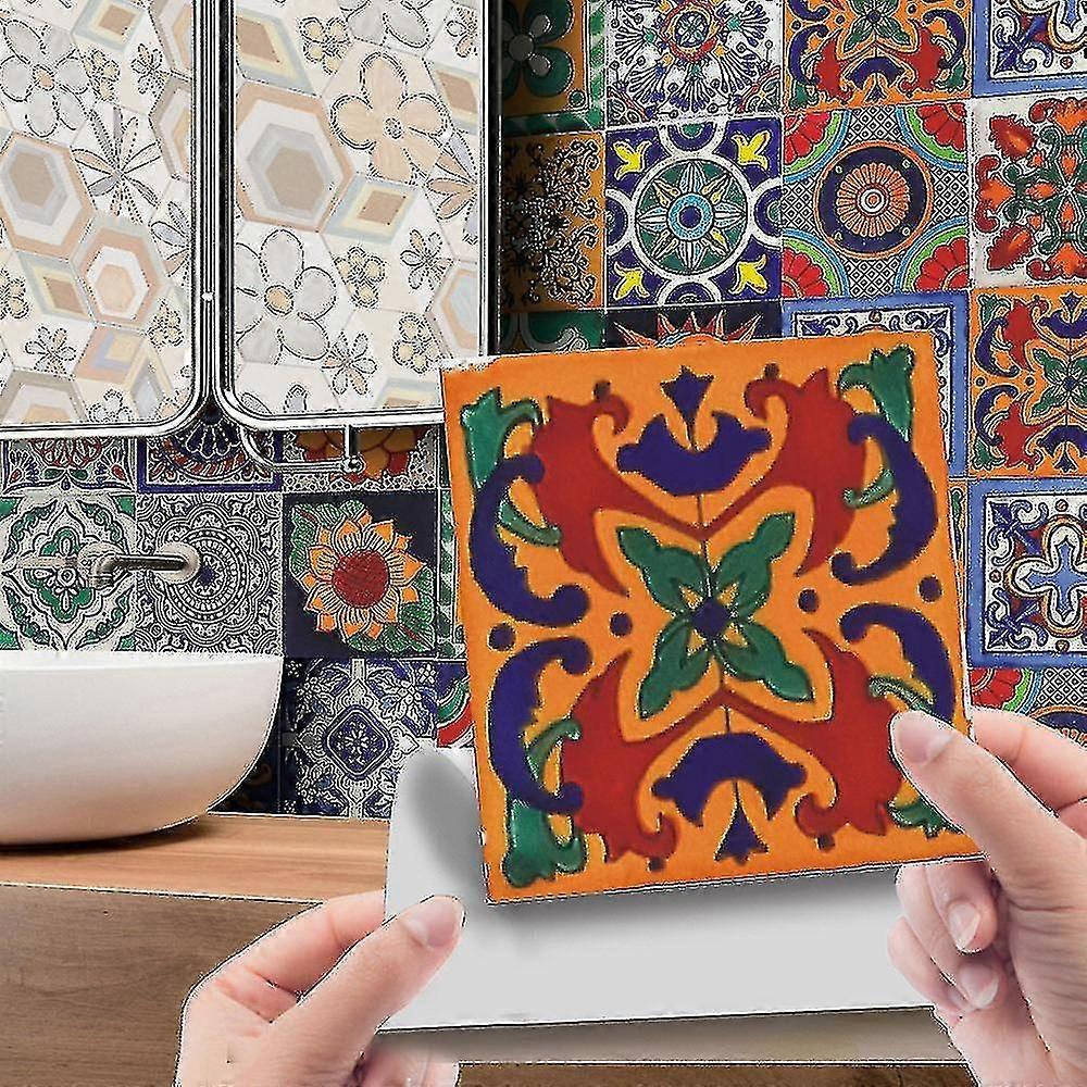 Bathroom And Kitchen Tile Stickers 24 Pieces 10x10 Cm - Waterproof Pvc Adhesive Wall Decoration Mosaic Cement Tiles Shibaod
