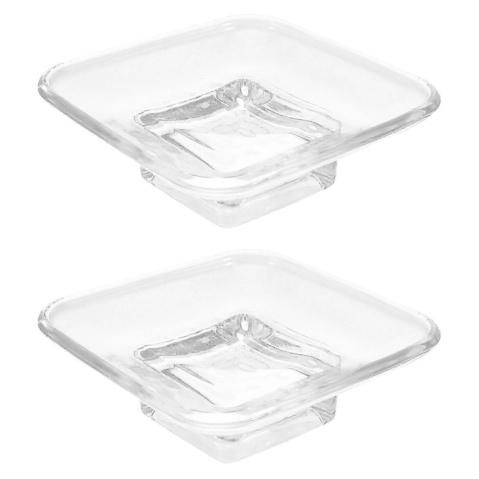 Soap Dish For Bathroom And Kitchen Compact Glass Anti-slip Design Wear-resistant Decorative Soap Holder Square Shape Transparent 2pcs
