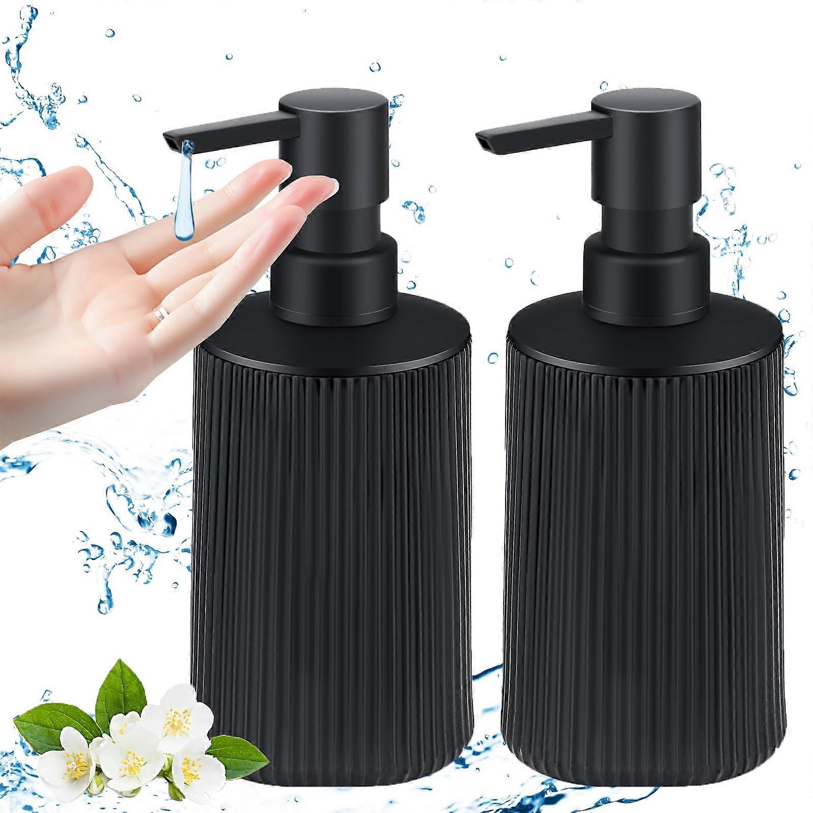 Pack of 2 Black Matte Plastic Soap Dispensers for Bathroom and Kitchen, Liquid Pump Shampoo and Shower Gel Dispenser