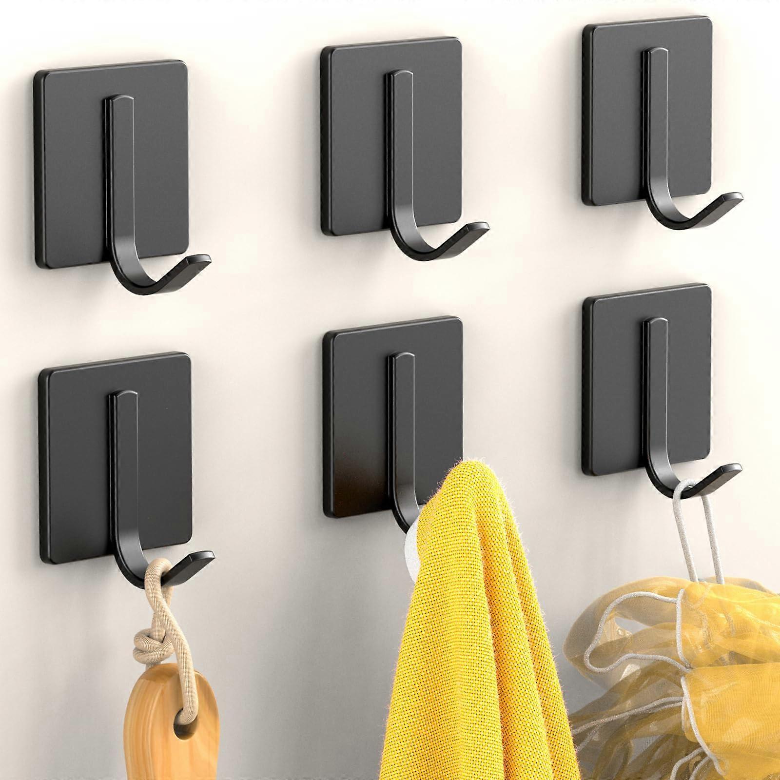 6 Pack Adhesive Towel Hooks for Bathroom and Kitchen - Heavy Duty, Waterproof, Strong Hold, Modern Design