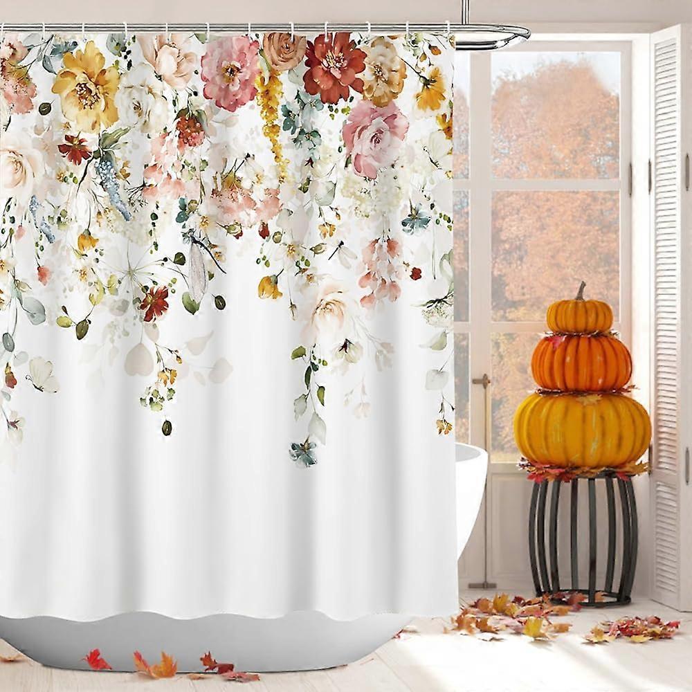 Fall Pumpkin Shower Curtains for Bathroom Autumn Floral Shower Curtain Leaves Shower Curtains for Bathroom Decor Washable Durable Fabric Shower Curtai