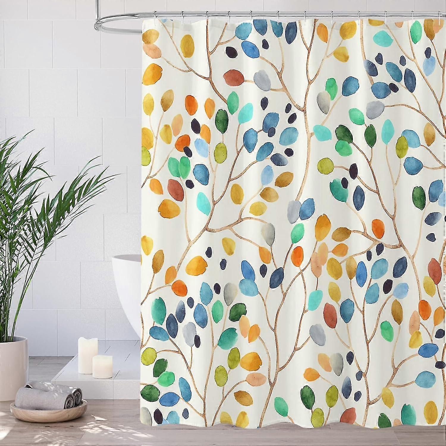 Boho Floral Shower Curtain for Bathroom, Colorful Leaves Fabric Shower Curtain, Abstract Watercolor Cute Botanical Decorative Shower Curtain Set with