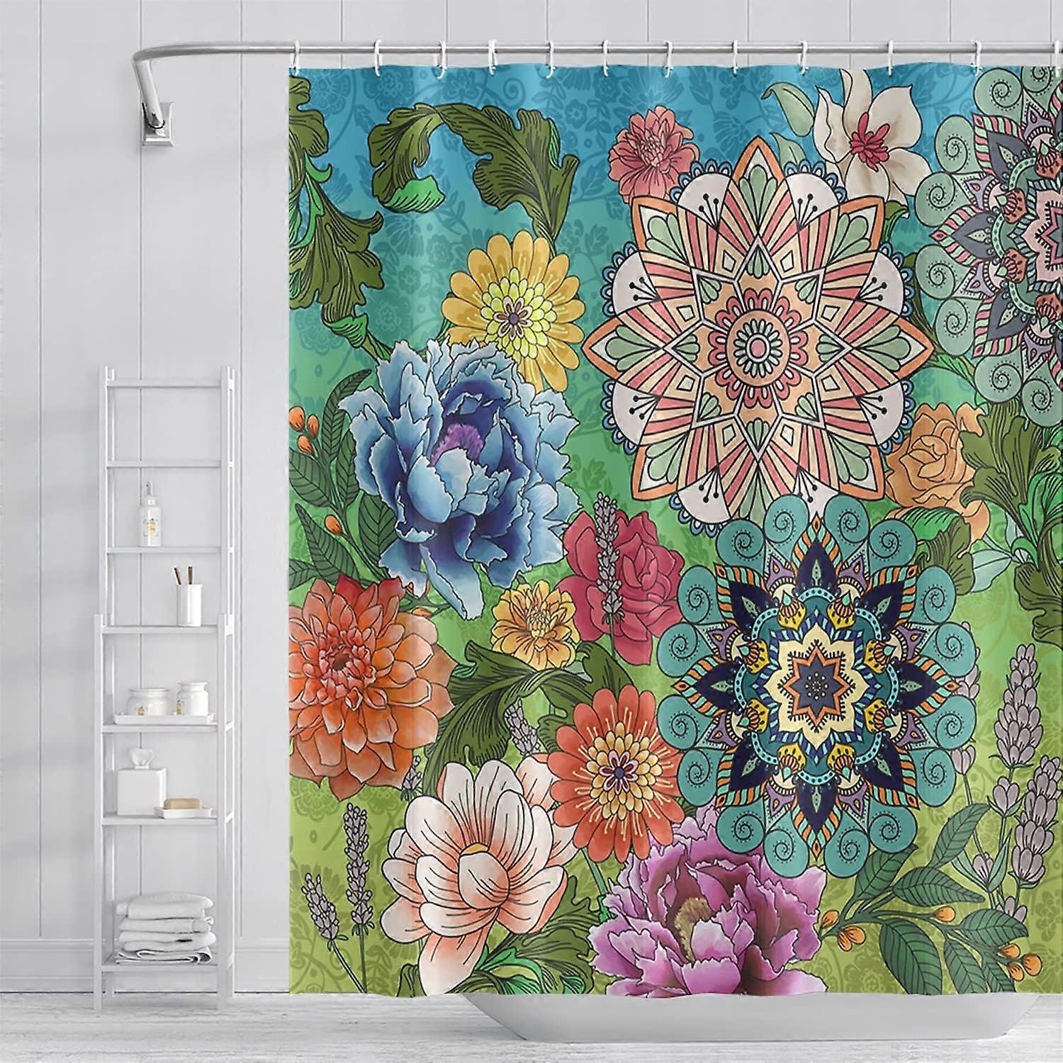 Boho Flower Shower Curtain for Bathroom Colorful Floral Tropical Plants Waterproof Polyester Shower Curtains Bohemian Abstract Artistic Home Decorativ