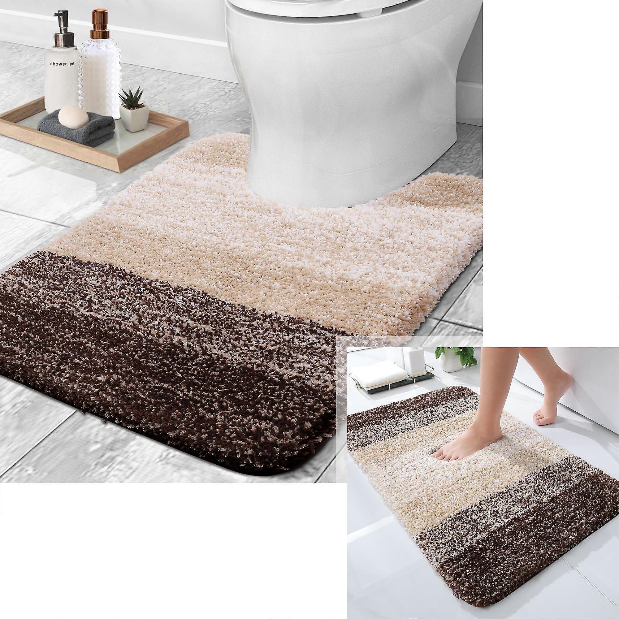 2 Item Bundle Ombre Bath Rug and Toilet Rugs for Bathroom Decor Size 24x16 and 24x20