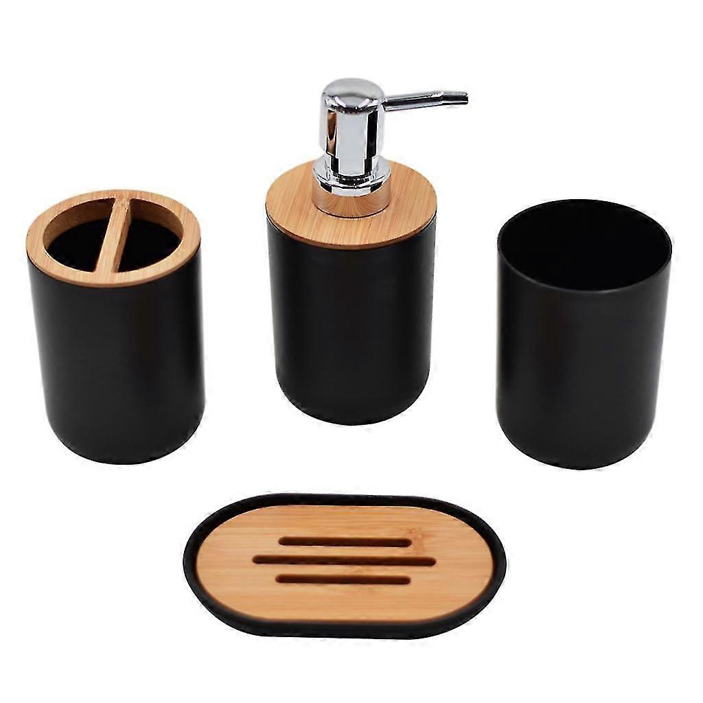 Bathroom Accessories Set Toothbrush Cup Plastic And Wood Mouth Cup For Tidy Black