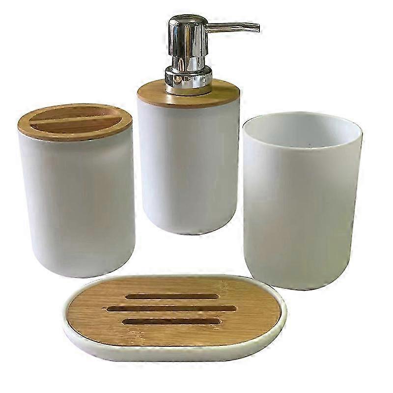 Bathroom Accessories Set - Soap Dispenser, Toothbrush Holder & Cup in White