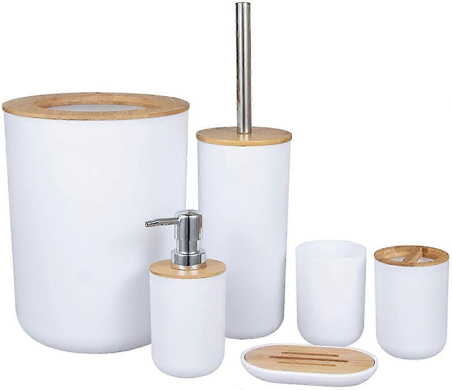 Bathroom Accessories Set - Bamboo Wood Bathroom Accessories Set, Toilet Brush, Soap Dispenser, Toothbrush Holder, Soap Dish