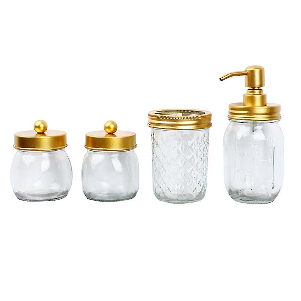 Bathroom Accessories Set 4 Pcs -Lotion Soap Dispenser & 2 Cotton Swab Holders & Toothbrush Holder (Gold)