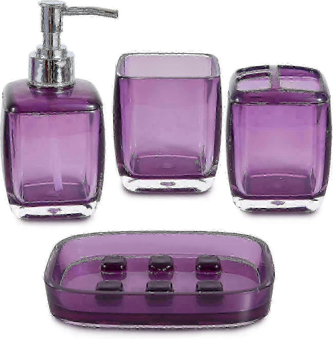 Bathroom Accessories Set 4 Pcs Purple Bathroom Set Bathroom Decor With Toothbrush Holder, Toothbrush Cup, Soap Dispenser, Soap Dish (purple)