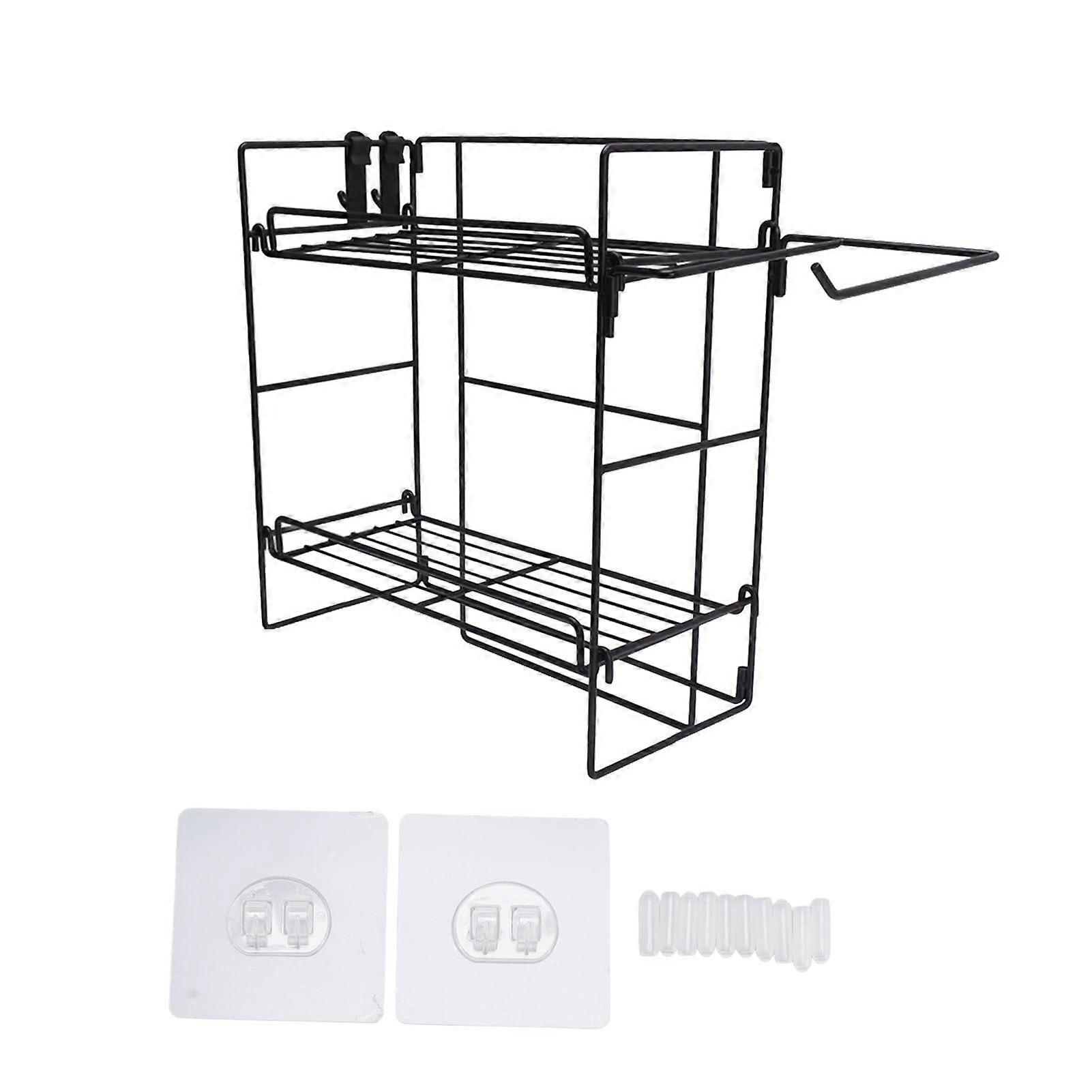 Bathroom Organizer Shelves Stainless Steel No Drilling 2 Tier Over Toilet Storage Rack with Hooks Adhesive Stickers Black
