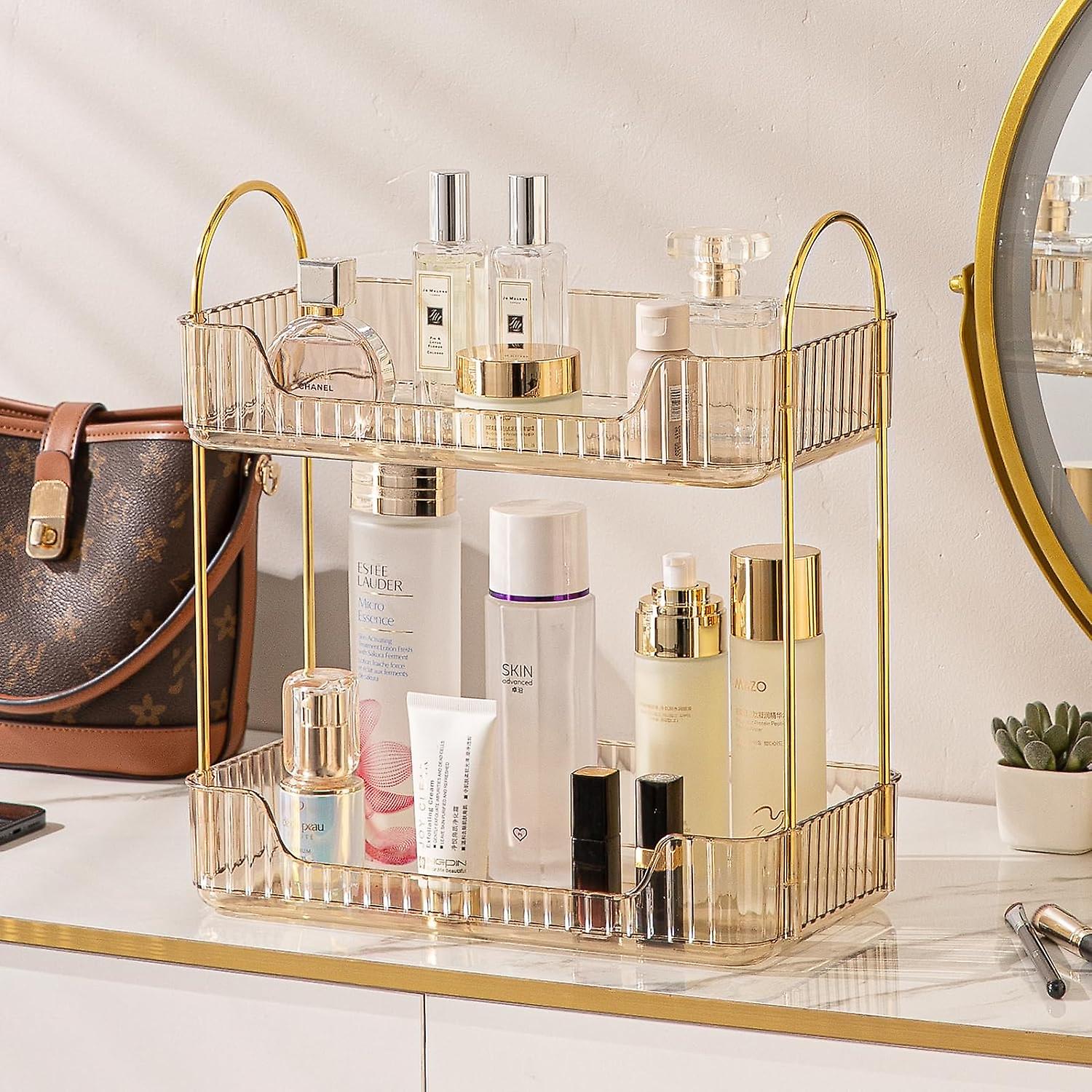Bathroom Counter Organizer,2 Tier Vanity Tray,multifunctional Bathroom Cabinet Counter Shelf - Golden