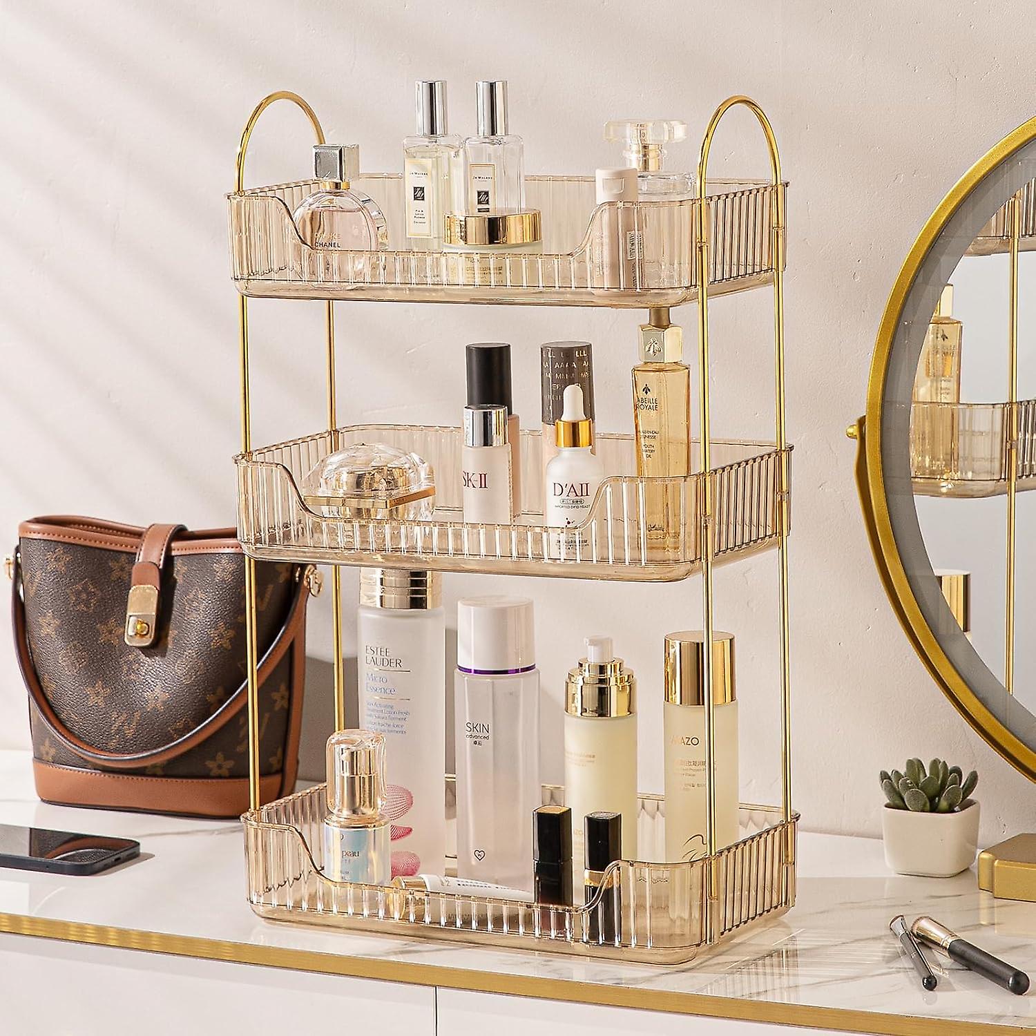Bathroom Counter Organizer,3 Tier Vanity Tray,multifunctional Bathroom Cabinet Counter Shelf - Golden