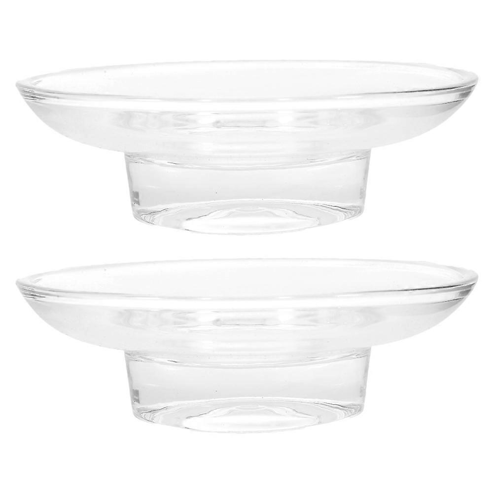 Soap Dish Storage Tray For Bathroom Countertop Non-slip Base Glass Soap Holder Elegant Round 2Pcs