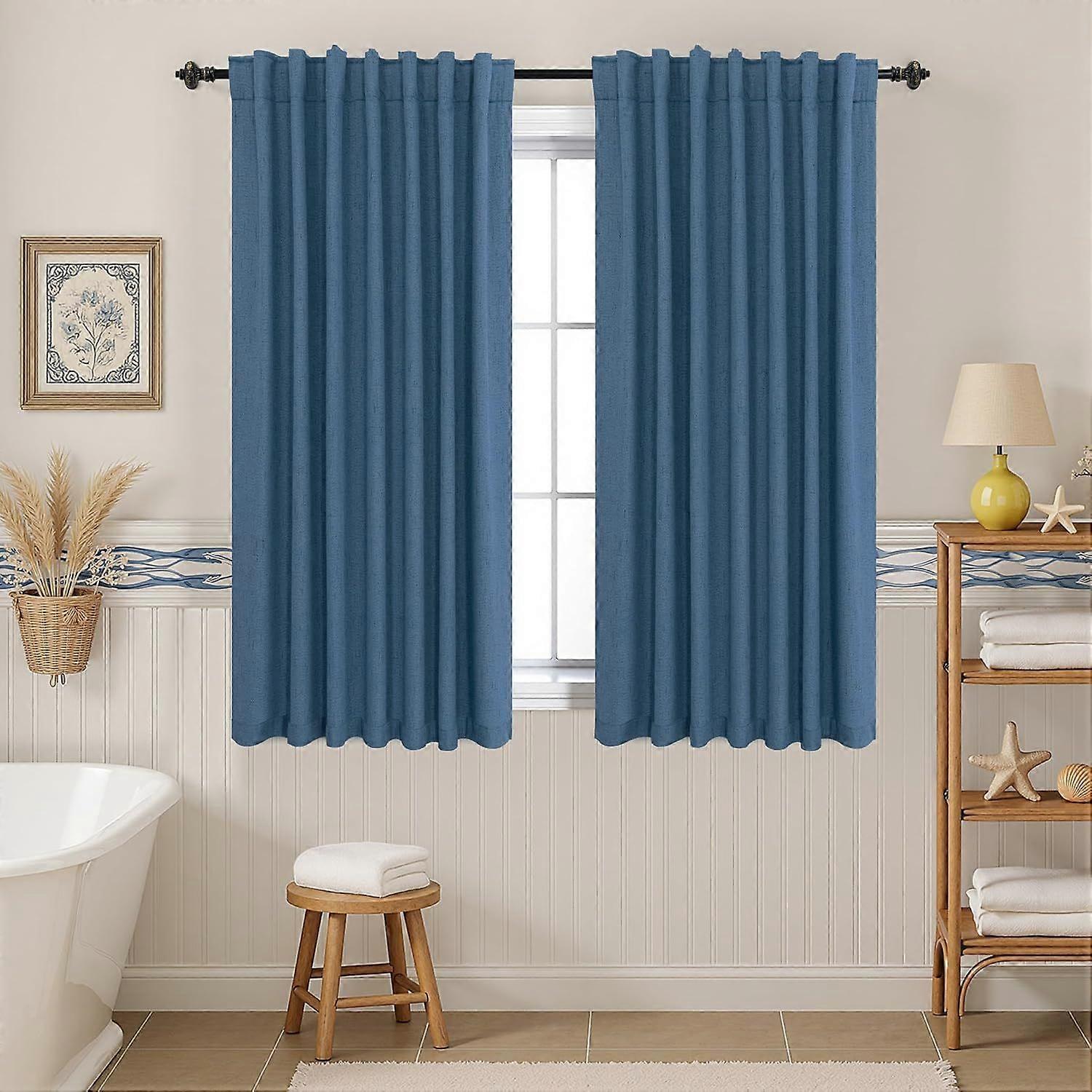 Bathroom Curtains Window,Coastal Ocean Blue Linen Black Out Short Curtains for