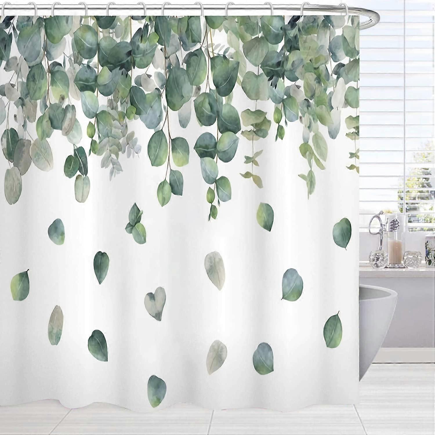 Bathroom Green Spring Shower Curtain, Floral Fabric Eucalyptus Shower Curtain Set with Hooks 72x72 InchTop Leaf Bathroom Curtain Vines Shower Curtain
