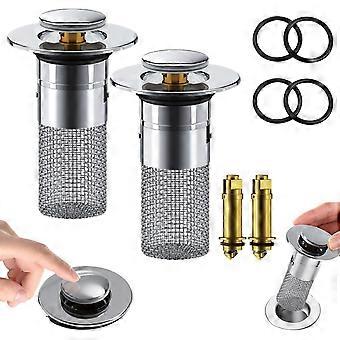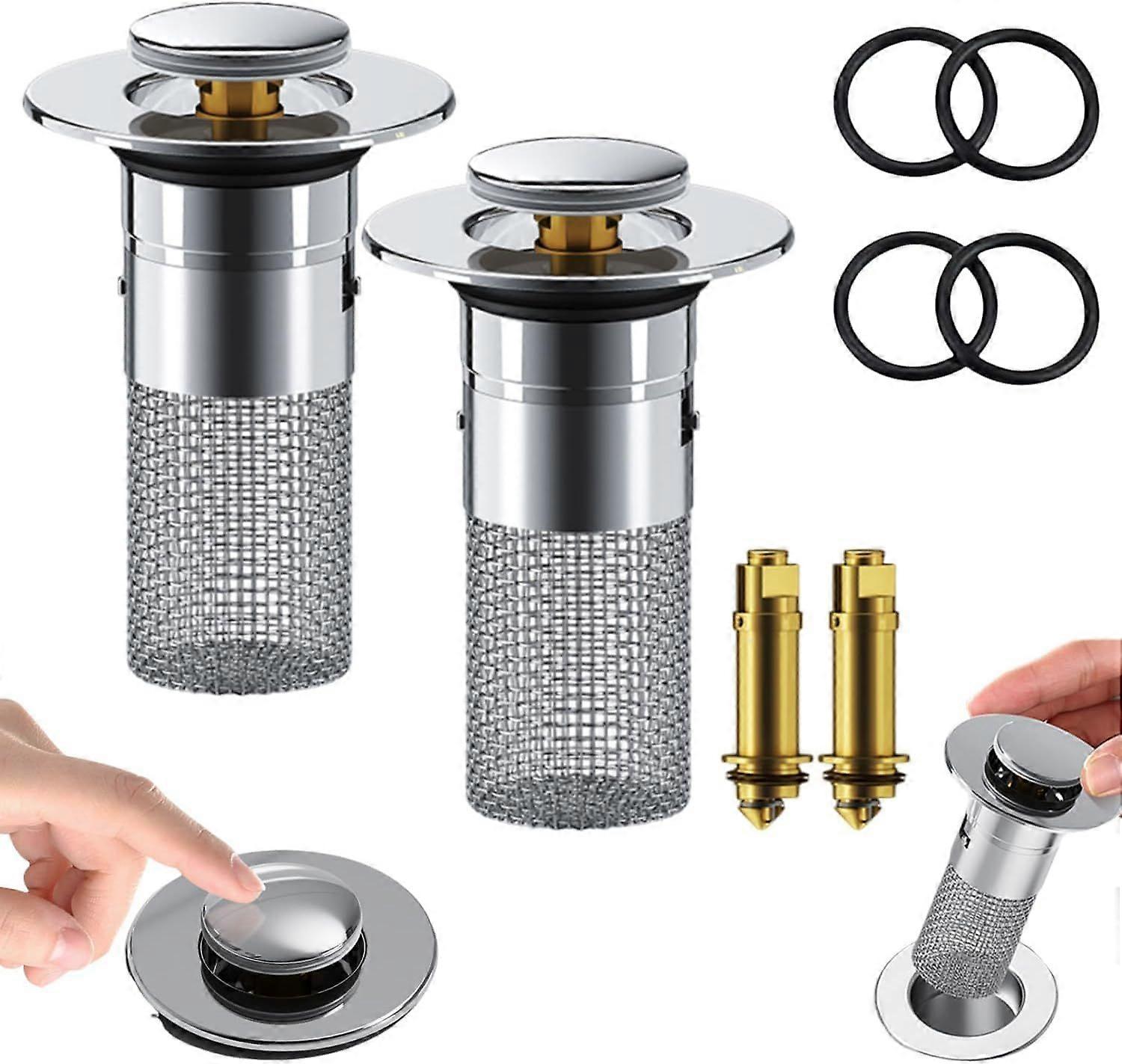 Bathroom Sink Stopper and Hair Catcher 2PCS 304 Stainless Steel Pop-Up Sink Drain Strainer