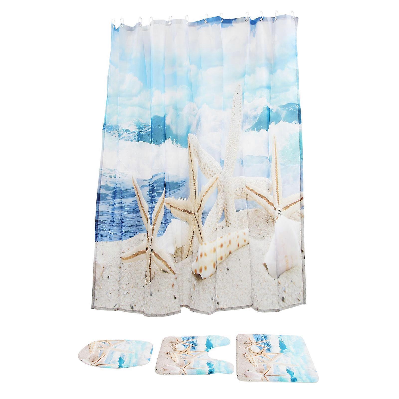 Bathroom Set Creative Printing Shower Curtain Floor Mat Kit Sea Theme Waterproof Anti-slip 1Set