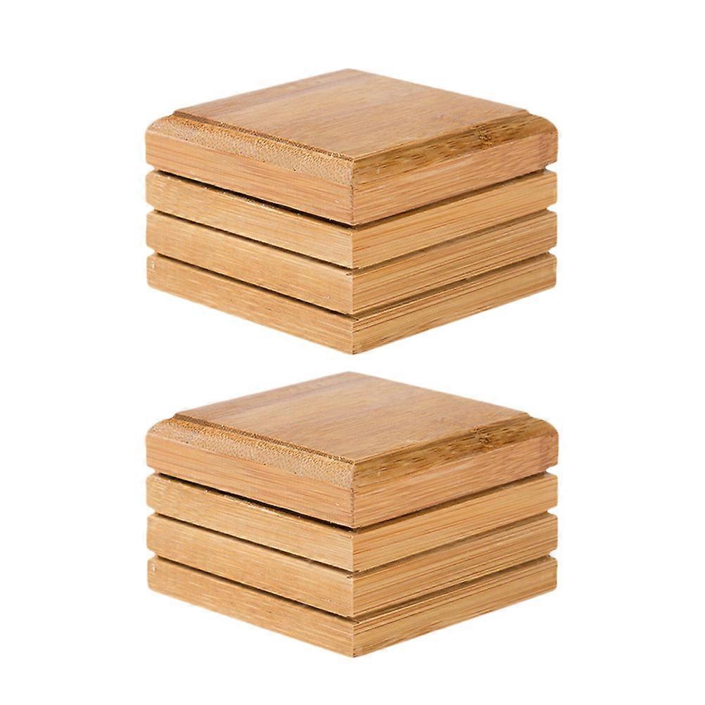 Bathroom Soap Dish Bamboo Soap Container Lid Design Khaki 8.4x5.5cm Drainage 2Pcs
