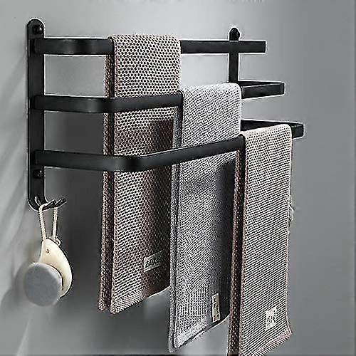 Bathroom Towel Bar, Black Wall Mounted Towel Bar For Shower And Kitchen, Waterproof Door Bars With Hook (50cm, Three Bars)