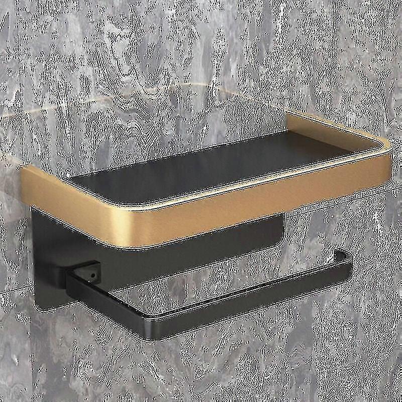 Bathroom Toilet Paper Holder Free Punches Wall Mounted Toilet Roll Holder Can Hold Cell Phones (double Gold Black)