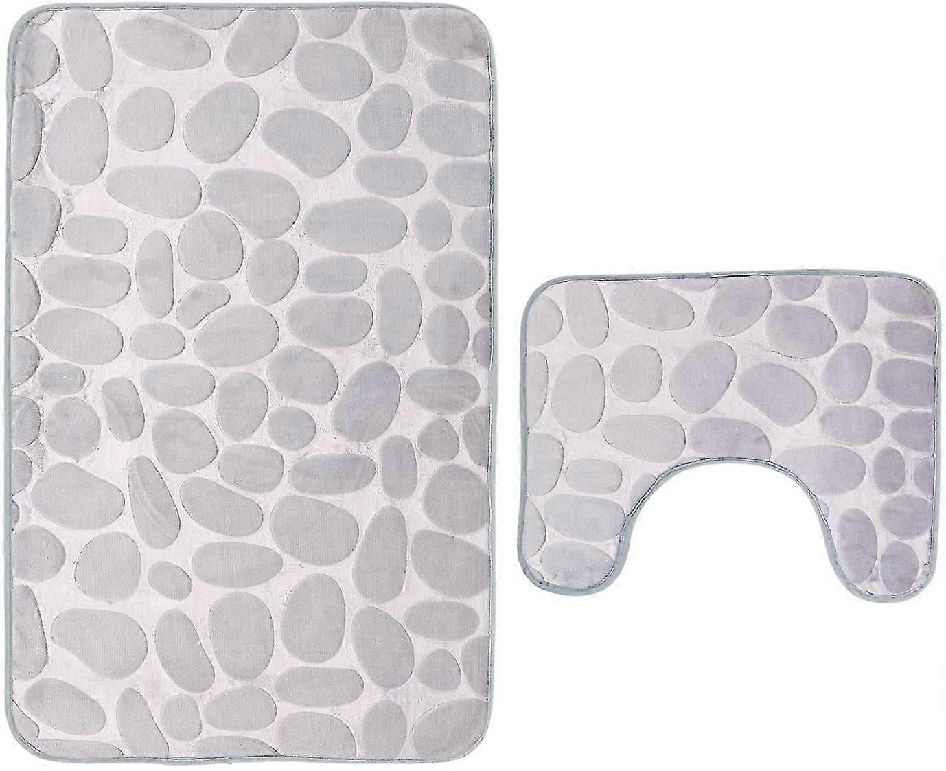 Bathroom Mats 2-Piece Non-Slip Washable Bathroom Mat Set,Bath Mat and Toilet Mat,80x50 Cm,Grey