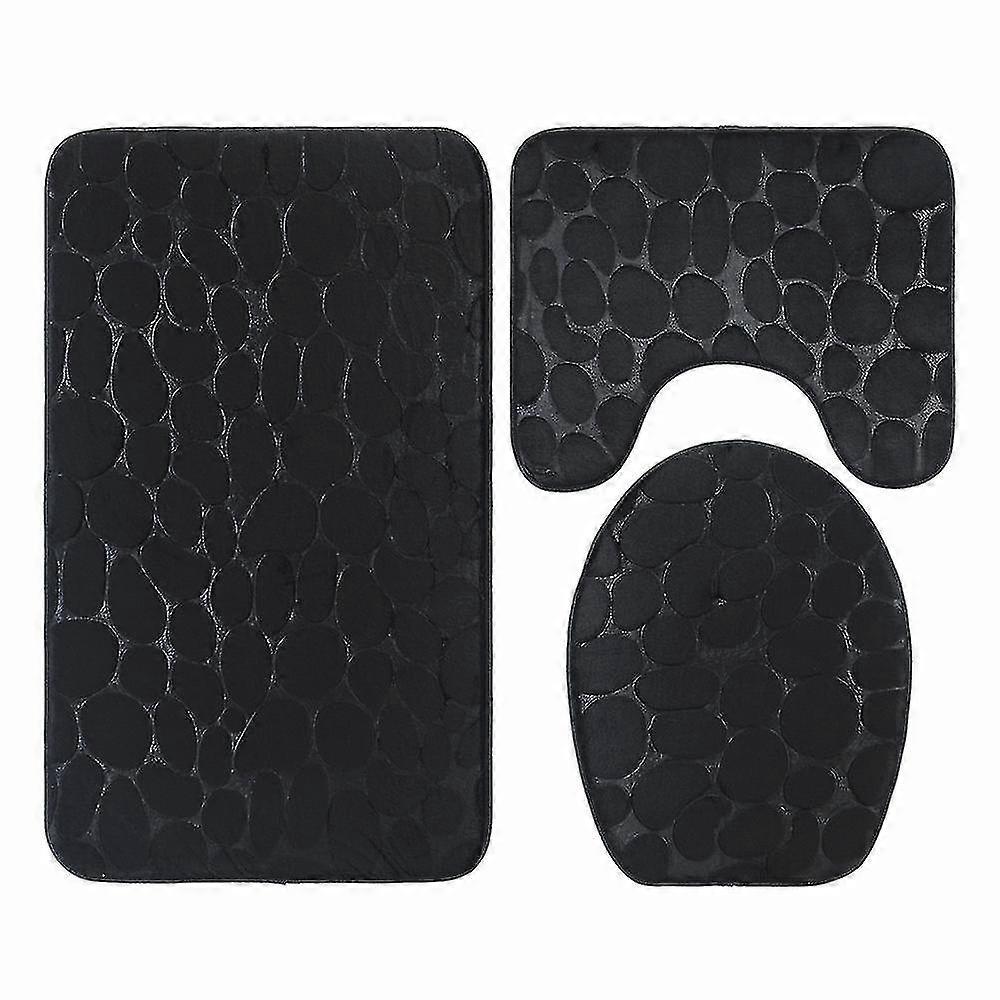 Bathroom Rug Set, 3 Pieces Bath Rug And Toilet Mat, Microfiber Bathroom Rugs Shower Mat, Super Absorbent Bath Mats For Tub, Shower, Bathroomblack, Sto