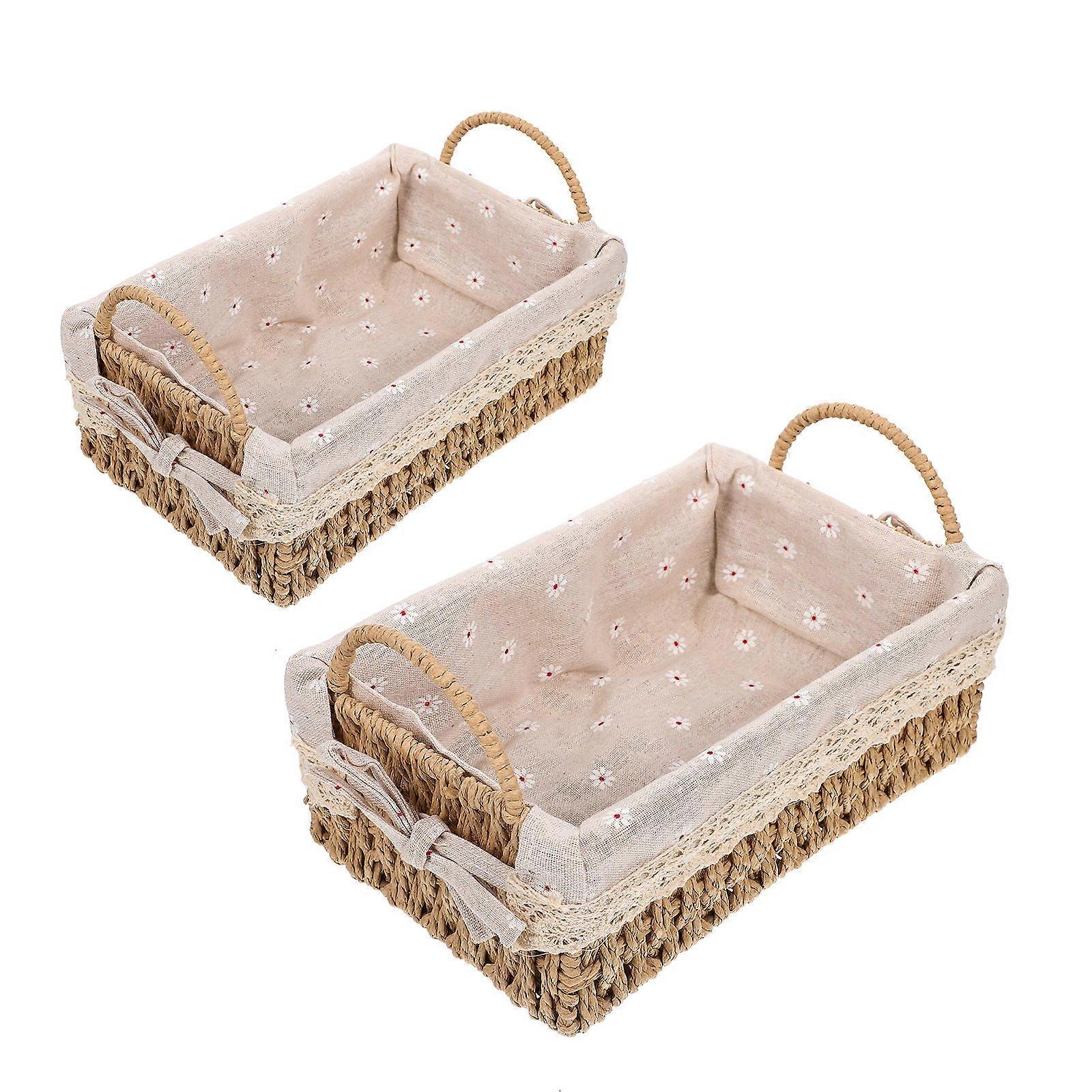 This product is a multi-function woven storage basket, which is made of nice material which is and . You will be easier and quicker to find some small items with this storage basket, and also you no longer have to rummage through piles of sundries on your desktop. Features -Color: Khaki -Material: Paper Rattan, Iron and Linen Cloth. -Size L: About 31.00X21.00X10.00cm/12.18X8.25X3.93inch. -Size S: About 25x16x9cm/9.84x6.3x3.54inch. - Made with and , environmental protection, and practical. - This storage basket could be used at your home and study room. It will bring you a neat home. - With a proper size, you can use this woven storage basket at your TV cabinet and desk. - Simple style with workmanship ensues its popularity and practicability. - It is a good helper for home furnishing, which will create a clean and tidy life for you. Package list: 1 x large storage basket 1 x small storage basket