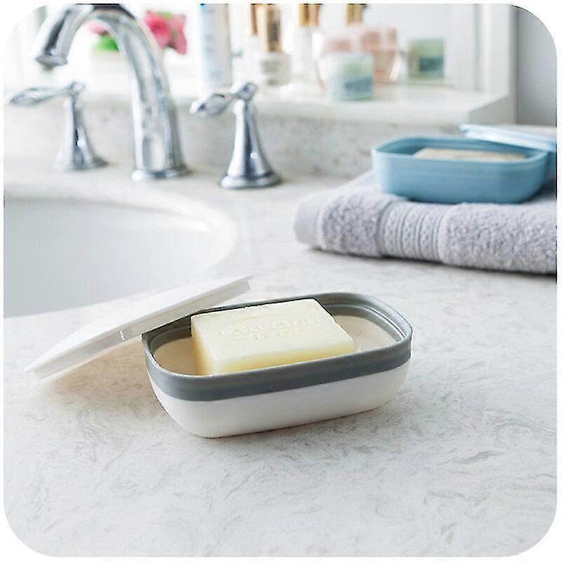 2pcs Plastic Soap Dish Soap Box For Bathroom Travel Hiking Camping (white)