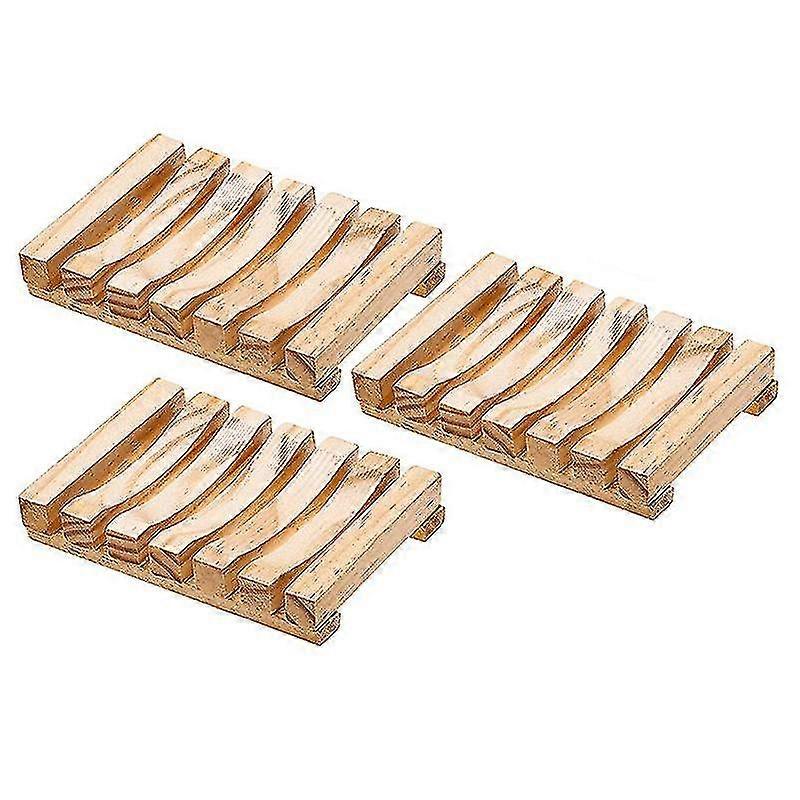 Bathroom Wooden Soap Case Holder Home Hand Craft Natural Wood Dish Holder 3 Set, Fire Color Zekai