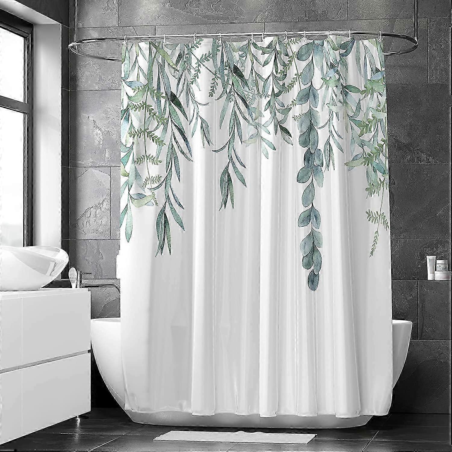 Green Plant Shower Curtain for Bathroom, Waterproof Fabric with Hooks, Tropical Leaves Design for Bathtub or Shower